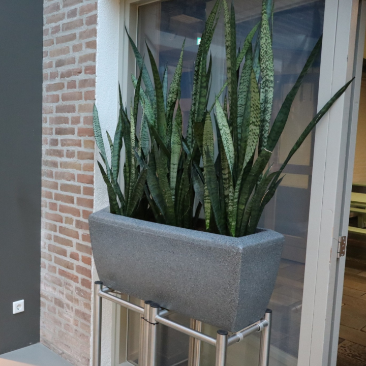 Daarnaast pronkt een grote, indrukwekkende strelitzia bij de ingang en in de hallen, wat bijdraagt aan een inspirerende en levendige sfeer in het hele gebouw. Door de combinatie van hangplanten, grote groene blikvangers en mooie potten ontstaat een warme, uitnodigende omgeving waarin iedereen zich meteen welkom voelt.