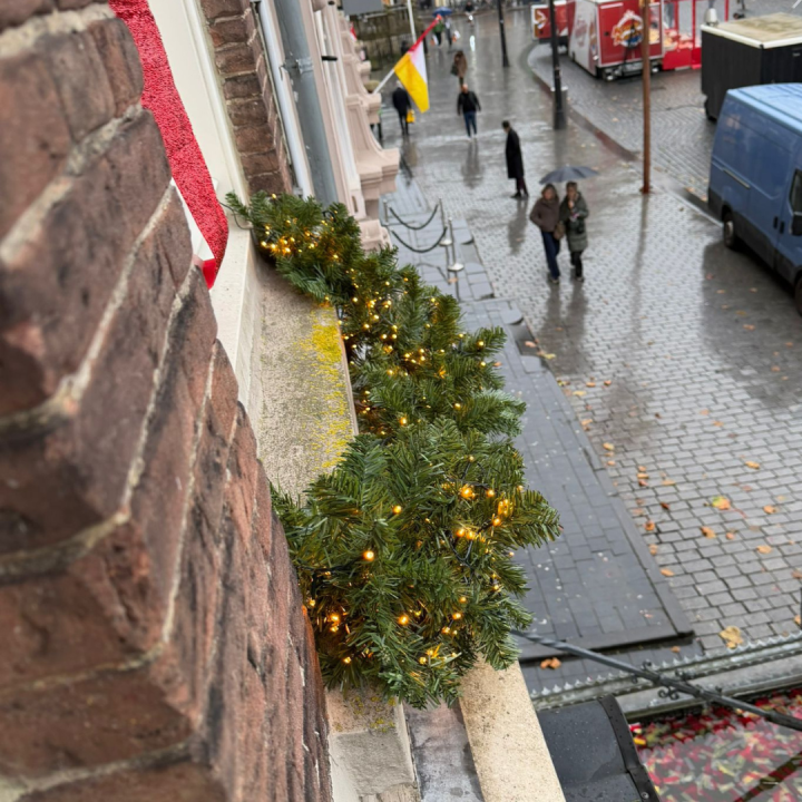 Bij De Druif in Den Bosch hebben we het pand volledig in kerstsfeer mogen brengen. De buitenkant is prachtig verlicht en rondom de ramen zijn sfeervolle guirlandes aangebracht, afgewisseld met strikken en verlichte kransen. Onder ieder raam zorgen guirlandes met verlichting voor een extra feestelijke en sprankelende uitstraling.