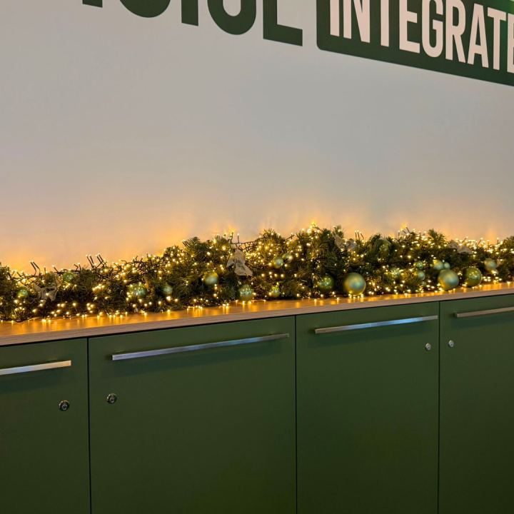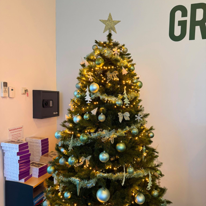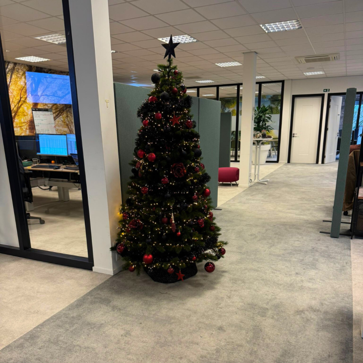 Bij Greenchoice Integrated hebben we het pand feestelijk aangekleed voor de kerstperiode. In de kantoorruimtes zijn mooie kunstkerstbomen geplaatst, rijkelijk versierd en verlicht, waardoor direct een warme, feestelijke sfeer ontstaat.