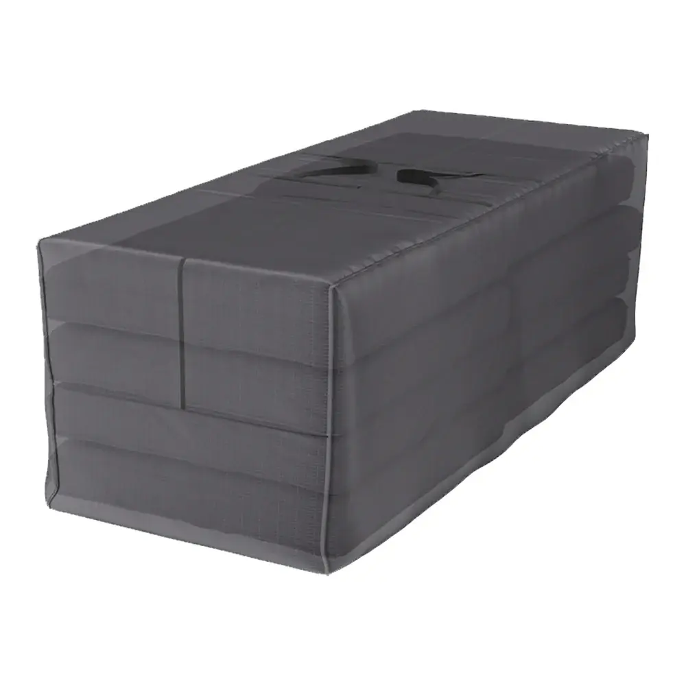 De AeroCover kussentas is de ideale oplossing voor het netjes en veilig opbergen van grote sets loungekussens. Dankzij het royale formaat van 200 cm breed berg je zelfs de meest volumineuze kussens moeiteloos op in deze tas. De hoes is uitgevoerd in een stijlvolle antracietkleur, waardoor hij onopvallend staat in je berging, garage of op zolder.
