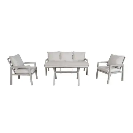 De Jayden Loungeset is een moderne en comfortabele set voor jouw tuin, terras of veranda, ideaal voor gezellige momenten met familie en vrienden. Het lichte, onderhoudsvriendelijke frame van gepoedercoat aluminium is duurzaam en de armleuningen van nonwood geven de set een luxe uitstraling.