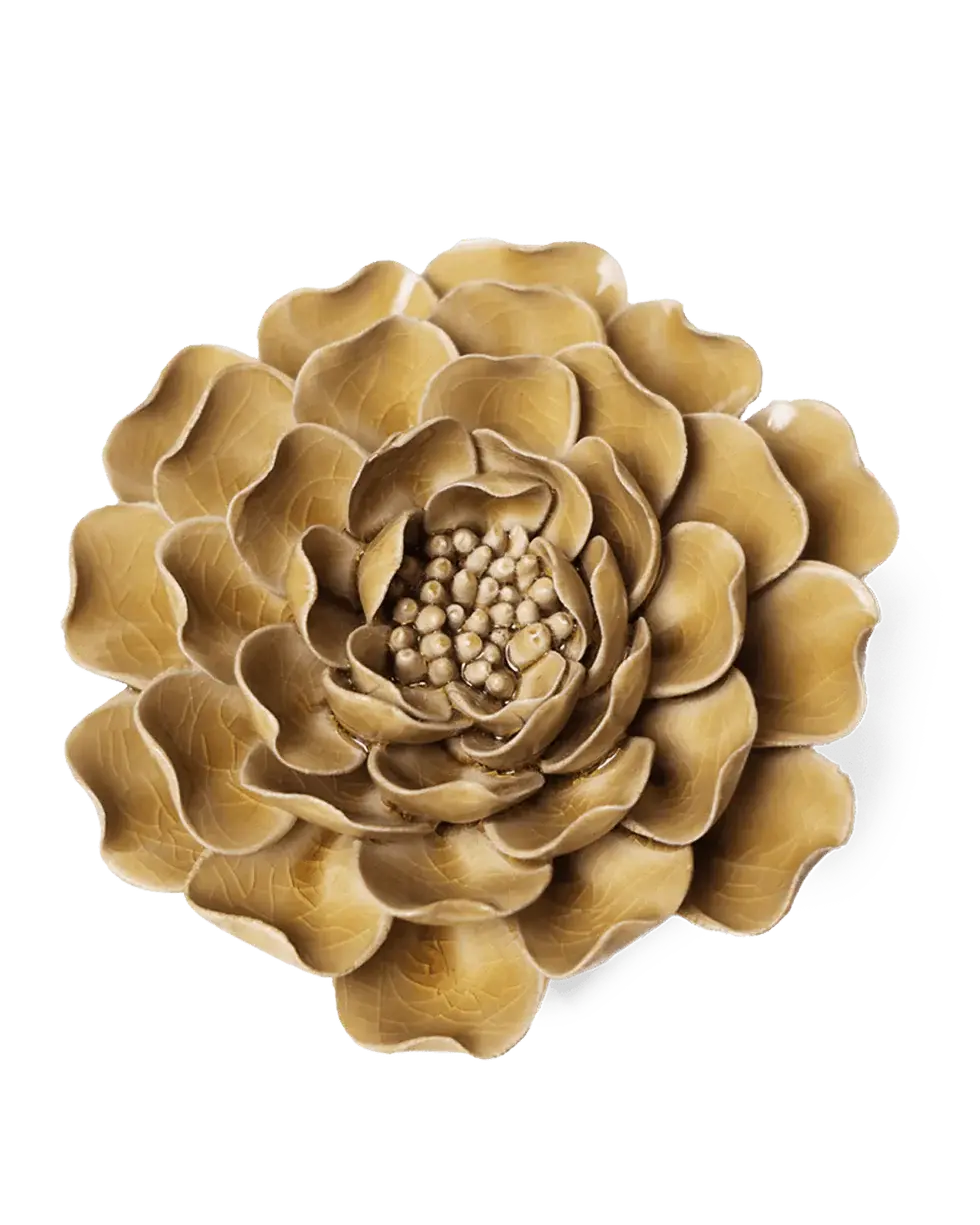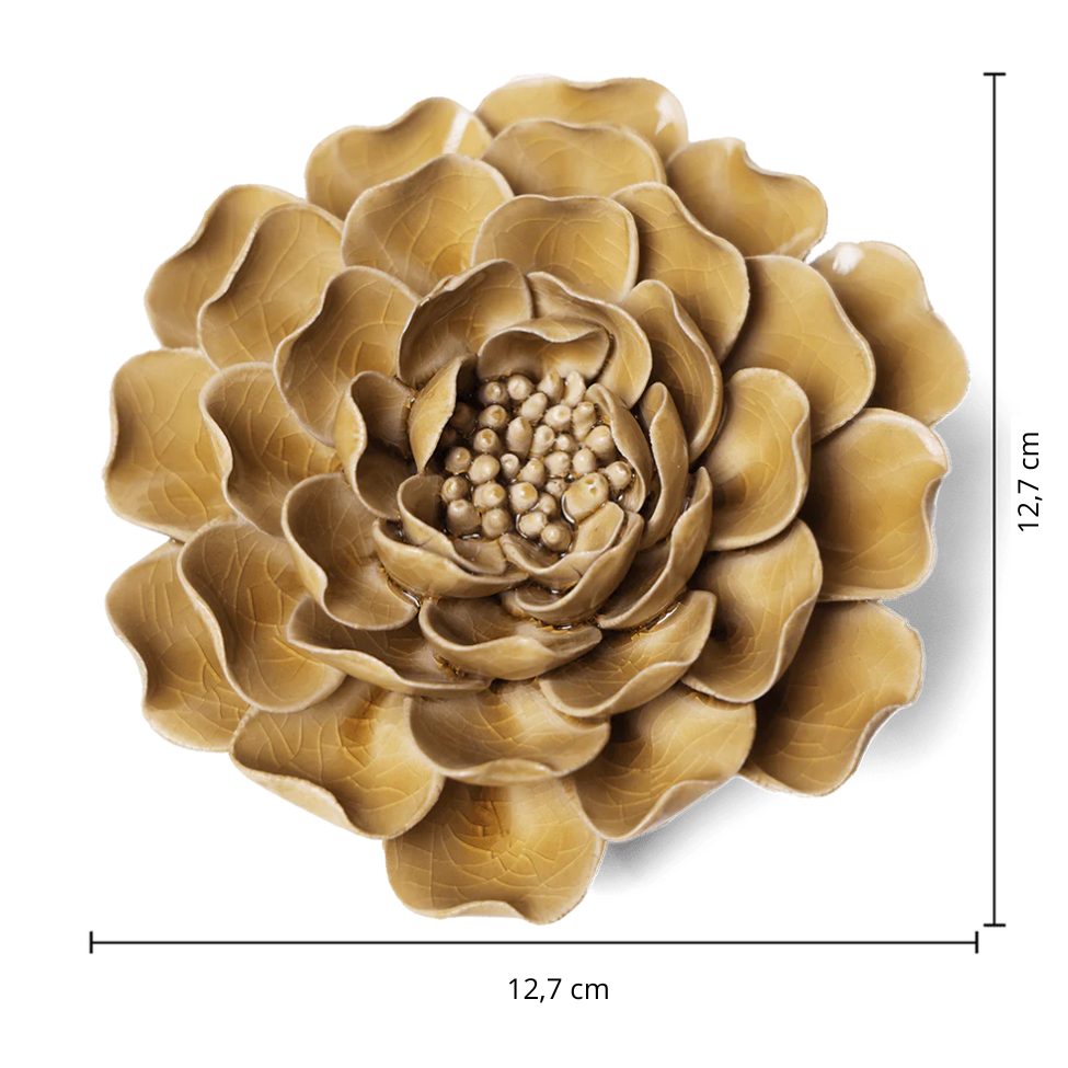 Breng warmte en elegantie in je interieur met de Keramiek Wandbloem Caramel Charm Pioenroos. Deze prachtige wandbloem is geïnspireerd op de volle, zachte vormen van de pioenroos en uitgevoerd in een rijke karamelkleur. Het verfijnde design en de warme tint maken deze keramieken bloem tot een sfeervolle en stijlvolle blikvanger aan de muur.