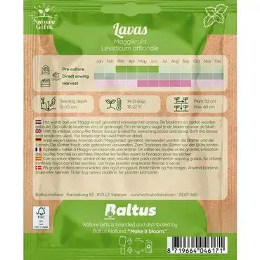 Lavas maggikruid is een sterke, aromatische plant met brede bladeren en een hartige smaak. Fantastische smaakmaker in soepen en sauzen.