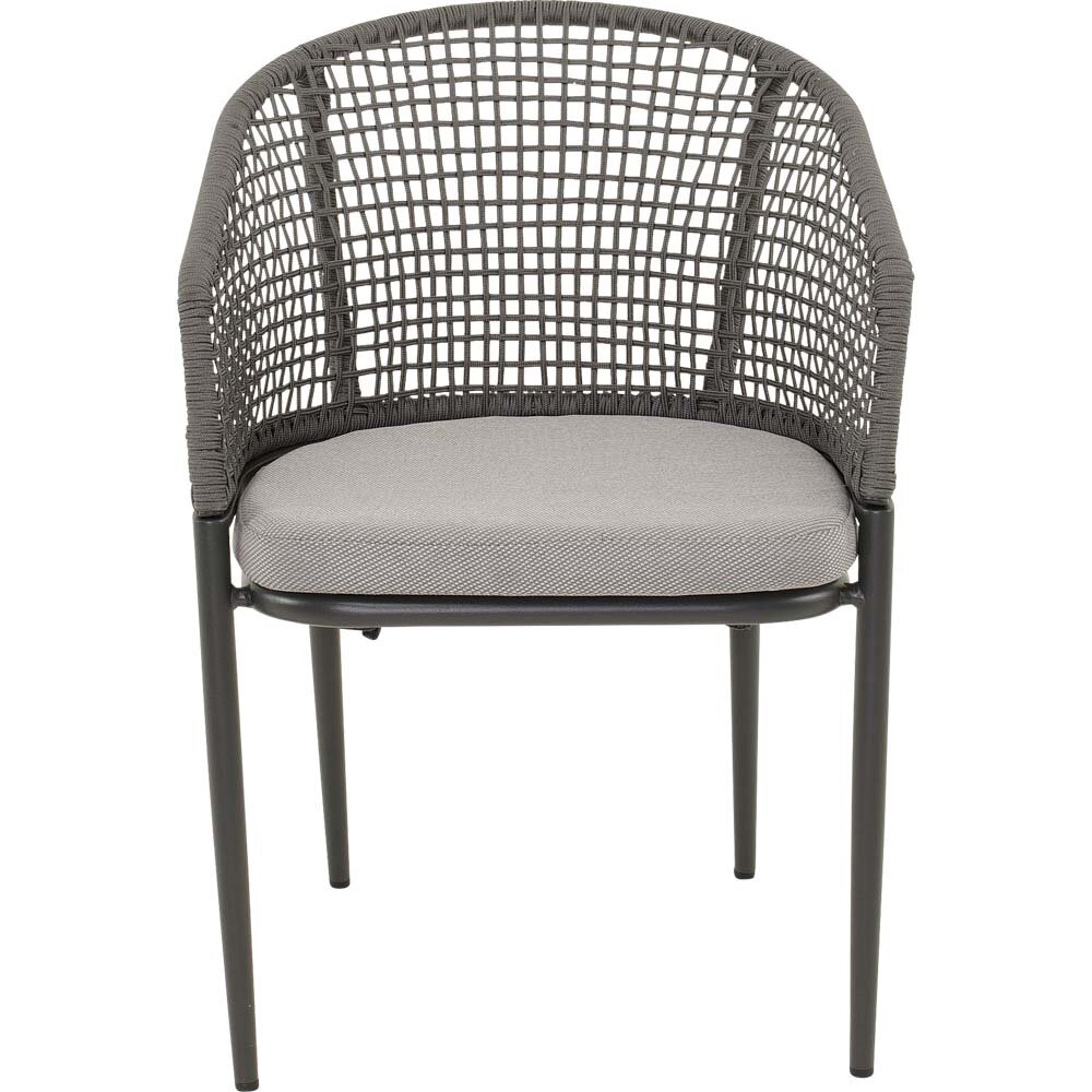 Breng stijl en comfort samen met de Stoel Kioto in grijs. Deze stoel combineert een strak, modern design met een comfortabele zithouding en duurzame materialen. Het mat-antraciet aluminium frame vormt een perfecte basis voor het elegante rope-design in donkergrijs, waardoor de stoel moeiteloos in iedere eigentijdse tuin, op je terras of balkon past.