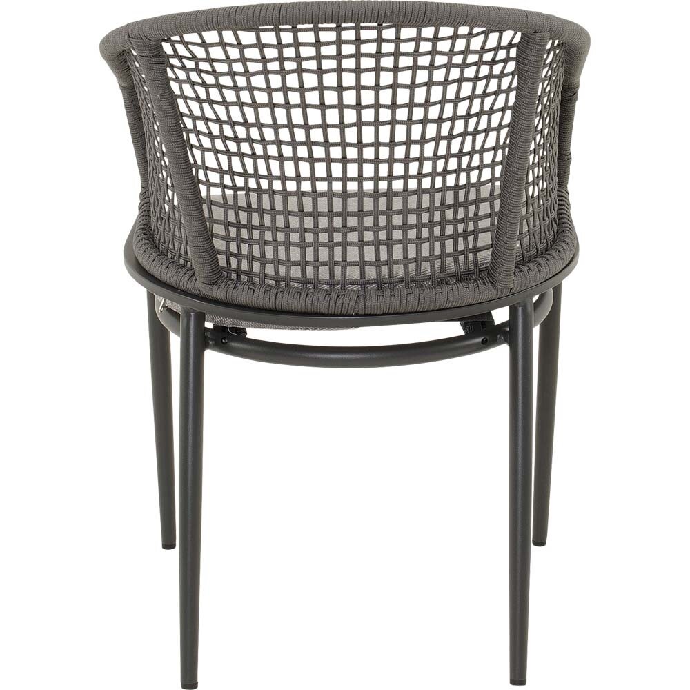 Het zitkussen is gemaakt van hoogwaardige olefin-stof (270 g/m²), die bekend staat om zijn weerbestendigheid en kleurechtheid. Samen met het stevige aluminium frame en de onderhoudsvriendelijke rope-afwerking ontstaat een stabiele stoel waar je dagelijks plezier van hebt.korte