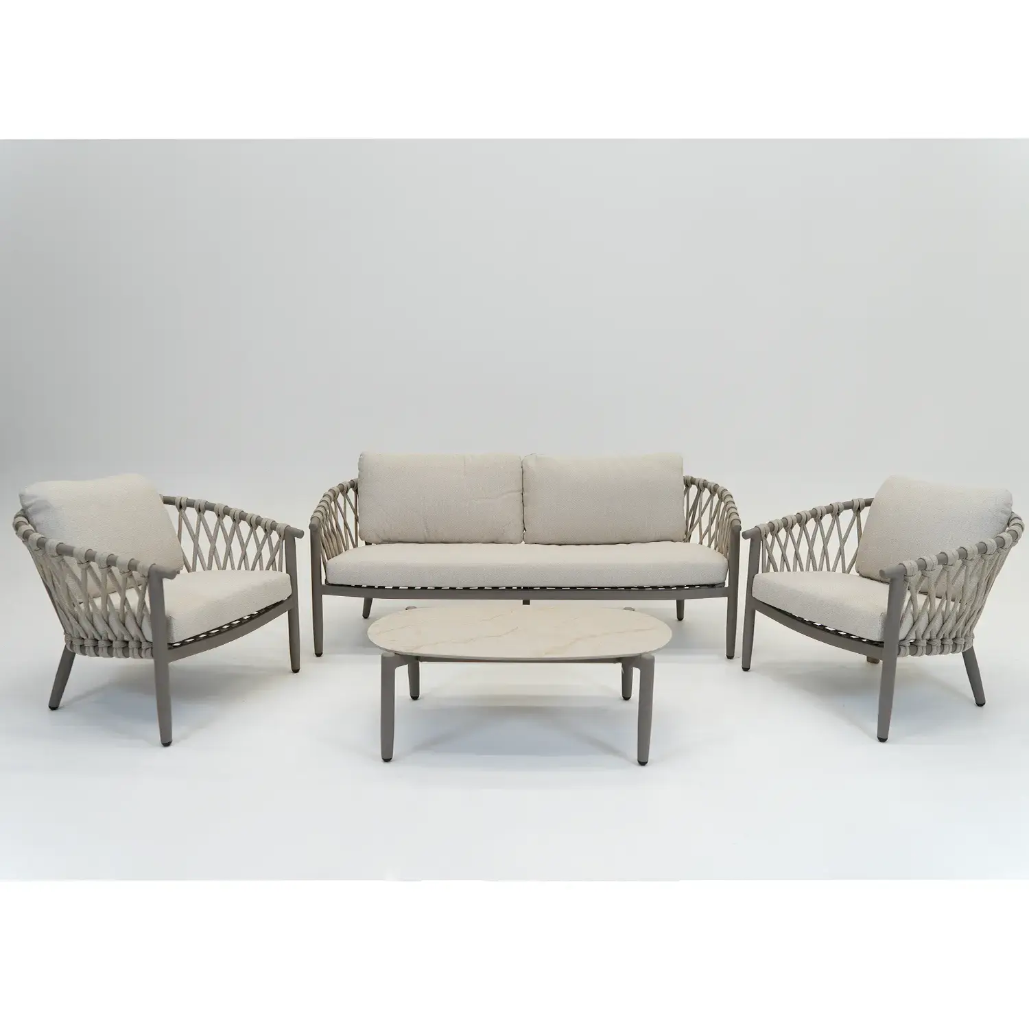 Maak van je tuin een verlengstuk van je woonkamer met de Monza loungeset. Deze 4-delige set is zorgvuldig ontworpen voor liefhebbers van comfort en een moderne esthetiek. Of je nu geniet van je eerste kop koffie in de ochtendzon of een gezellige middag borrelt met vrienden, de Monza biedt de perfecte basis voor elk buitenmoment.