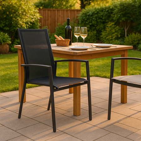 De zitting en rugleuning zijn gemaakt van ademend 2x1 textilene, een weerbestendig materiaal dat prettig aanvoelt en zich vormt naar je lichaam. Dankzij de verstelbare rugleuning kies je eenvoudig de ideale zit- of relaxpositie.