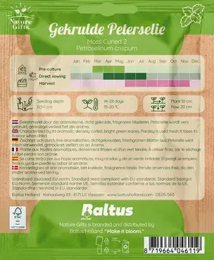Geef je gerechten een finishing touch met de gekruile peterselie. Deze peterselie is zeer productief, groeit snel terug na het knippen en is zowel geschikt voor de volle grond als voor potten in de vensterbank.