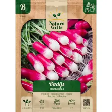 De radijs flanboyant 2 is een franse specialiteit met langwerpige, rode radijsjes met een witte punt. Ze zijn knapperig en hebben een milde smaak.