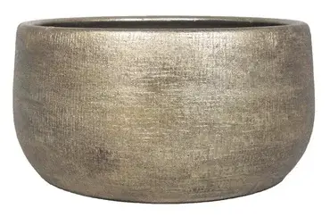 Decoratieve keramische schaal in industrieel goud met marmerachtige uitstraling, ideaal om planten, potjes of woonaccessoires stijlvol te presenteren binnenshuis.