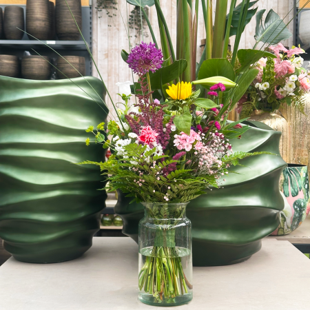 Let op: dit is een seizoensgebonden boeket. De samenstelling kan variëren afhankelijk van de beschikbaarheid van bloemen. Elk boeket is uniek en wordt met zorg en liefde samengesteld door onze bloemisten.