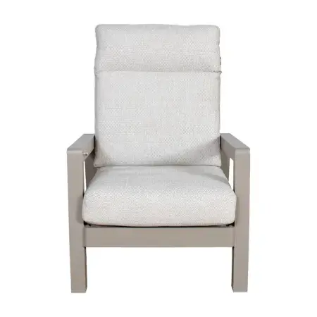 Alle stoelen en de bank worden geleverd met dikke, 20 cm hoge zitkussens en rugkussens van spun polyester, die waterafstotend zijn en extra comfort toevoegen. Zo geniet je zonder zorgen van lange, ontspannen momenten buiten.