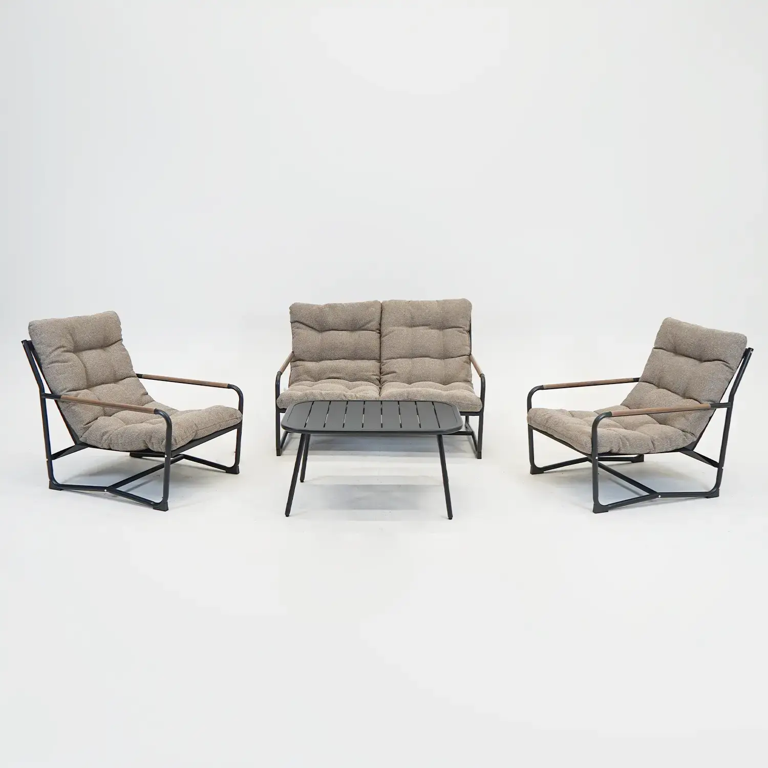 De set biedt plek aan voor 4 personen en bestaat uit een loungebank, twee comfortabel loungestoelen en een tafel. Perfect om rustig een boek te lezen of voor een gezellige middag met vrienden.