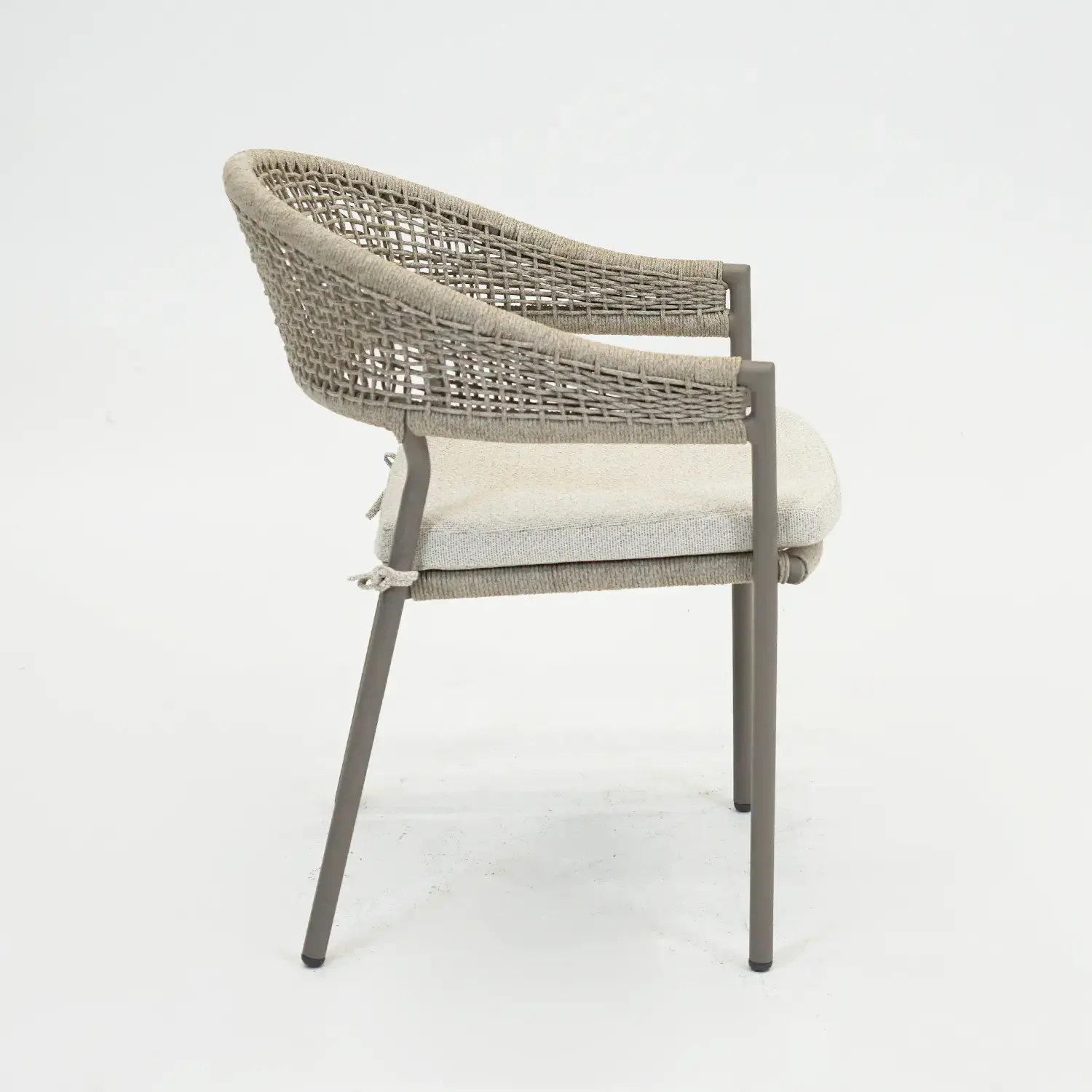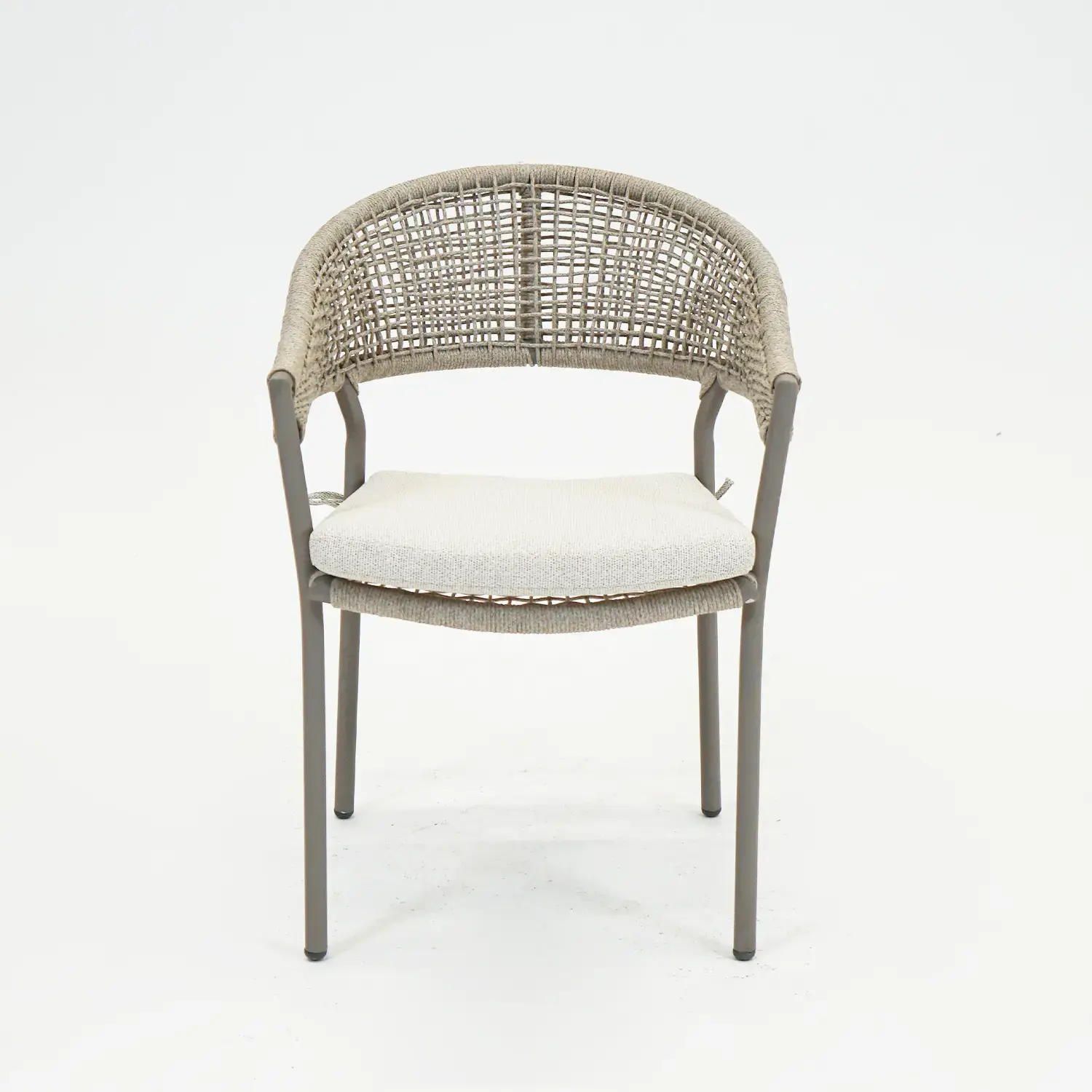 De Marina stapelstoel is de ideale keuze voor wie houdt van een strak design en praktisch gemak. Deze stoel is speciaal ontworpen om zowel aan de eettafel binnen als buiten in de tuin tot zijn recht te komen. De neutrale beige kleur en het verfijnde patroon van de vlechtingen geven de stoel een unieke en moderne uitstraling die rust brengt in elke setting.