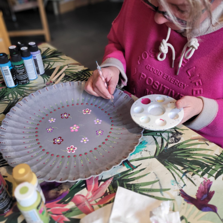 Zin in een creatieve ochtend vol kleur, ontspanning en gezelligheid? Tijdens deze Dot Art workshop ga je aan de slag met het versieren van je eigen dienblad met de dotting-techniek. Geen ervaring nodig, iedereen kan het leren en er iets moois van maken ✨