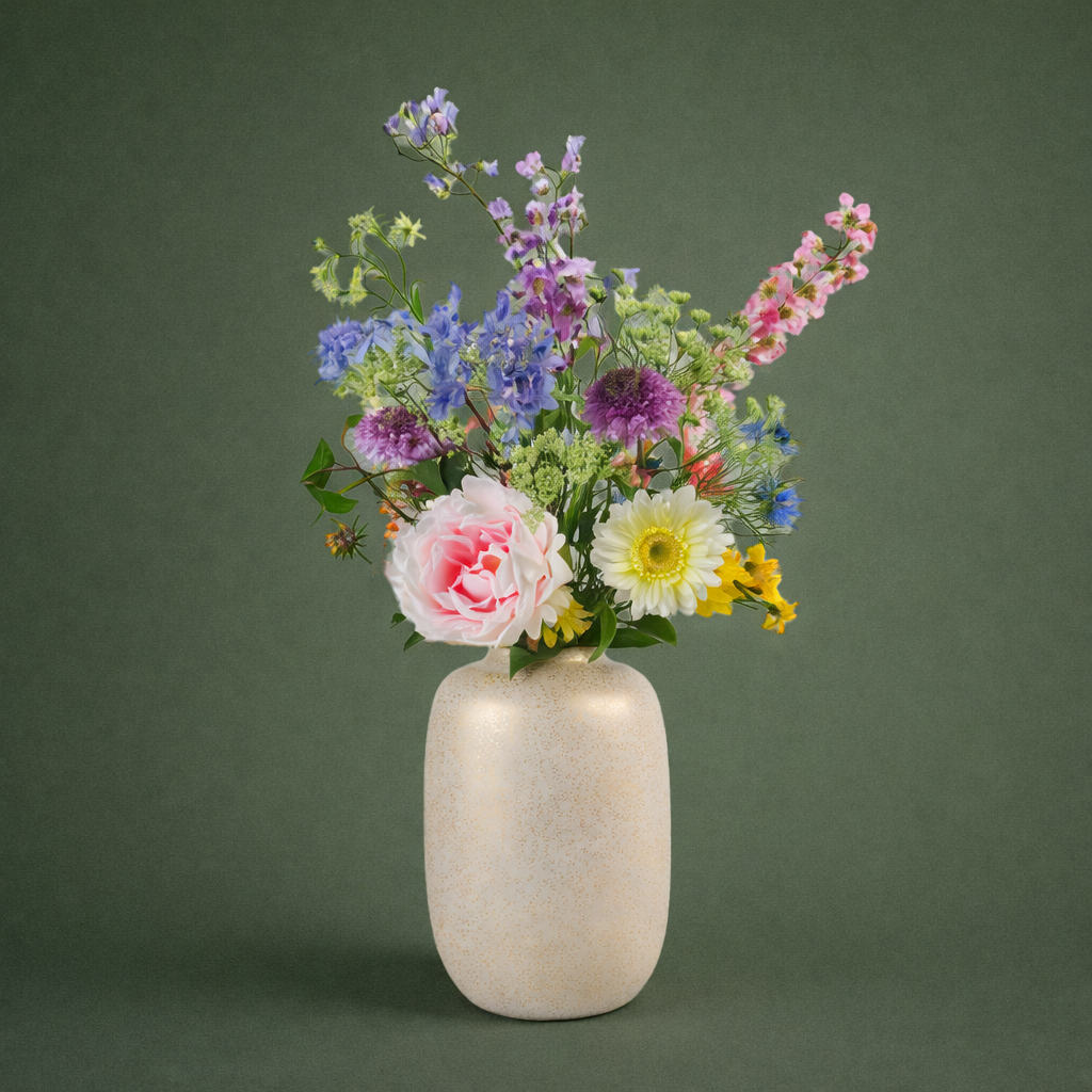 Wil je het helemaal afmaken? Voeg een vaas toe en creëer een compleet kunstbloemenarrangement voor je huis of bedrijf. Bestel vandaag nog en breng de zachte charme van Boeket Pastel Spring naar jouw interieur in Den Bosch.